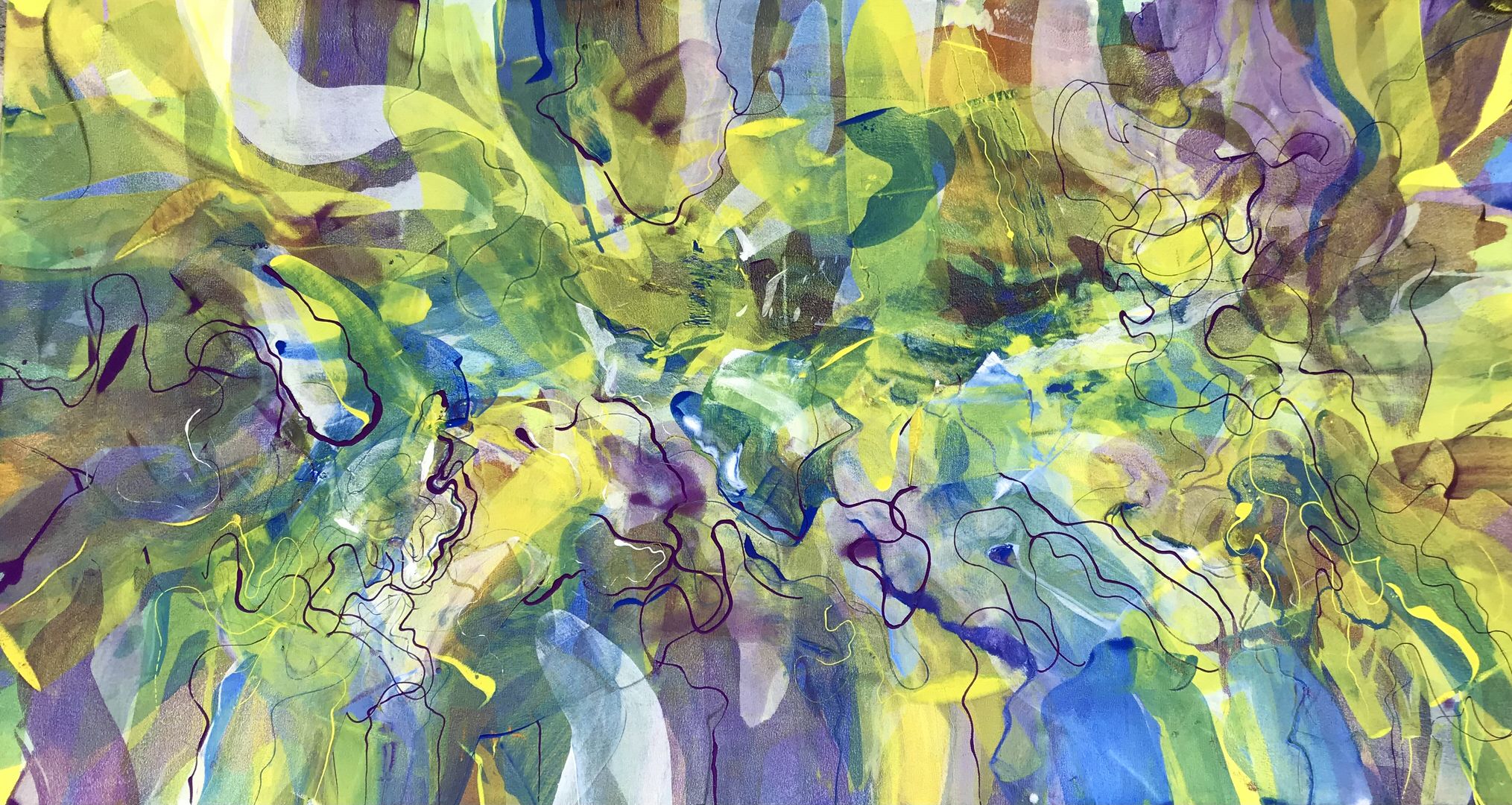 Tumbling, oil on canvas, 48x 90 inches